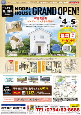 小野市黒川第4にて、8/4(土)・5(日)にW発電搭載の新モデルハウスの見学会を開催いたします!