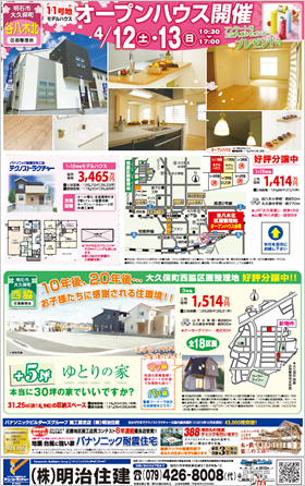 4/12(土)・13(日) 明石市大久保町谷八木北区画整理地 オープンハウス開催!